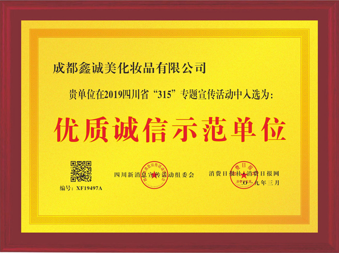 成都鑫誠美化妝品有限公司榮獲“3.15”優(yōu)質誠信示范單位